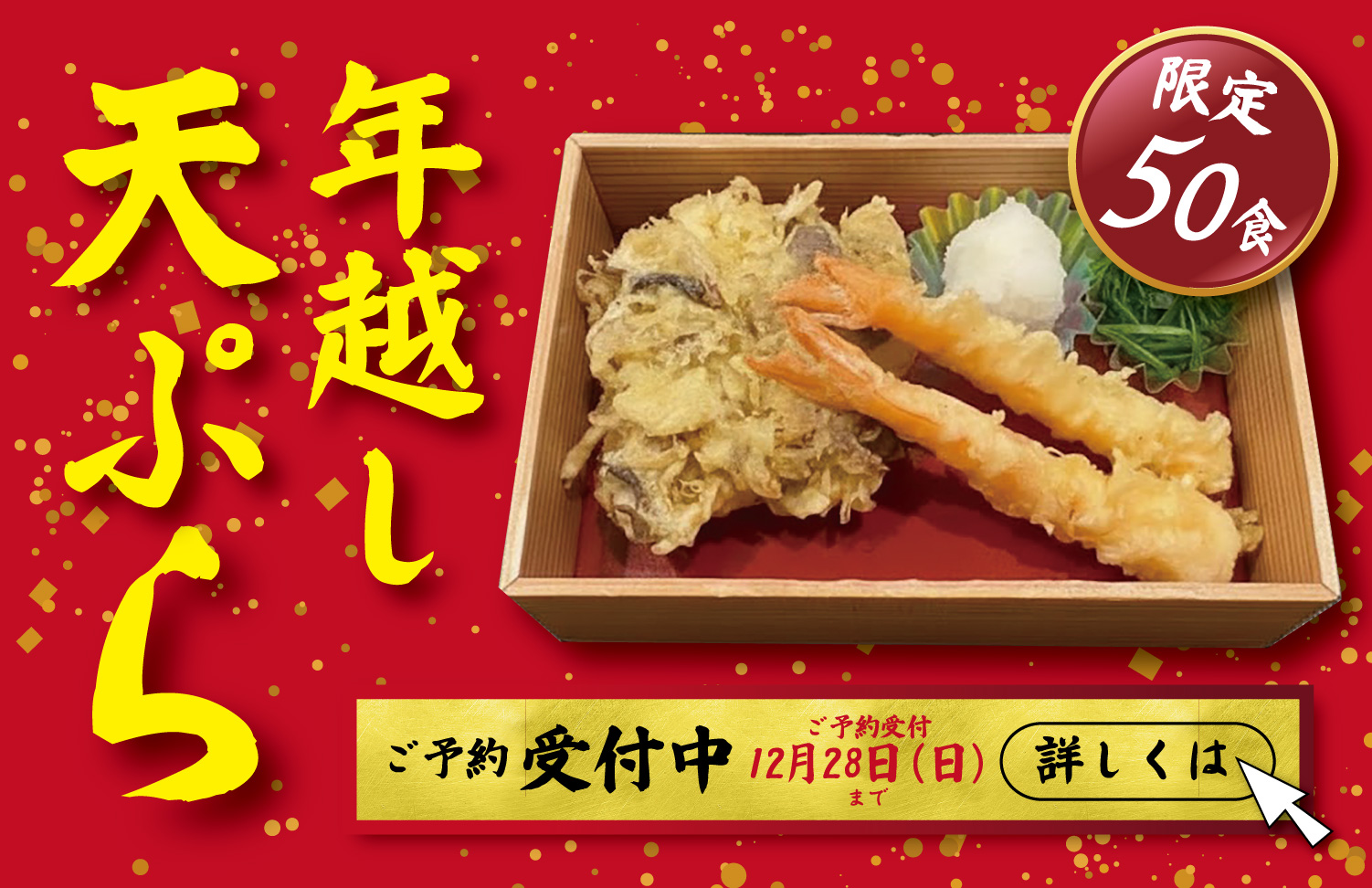お肉から海鮮まで、旬の食材を最大に活かした最高のてんぷらをご提供させていただきます。是非ご来店いただきご賞味ください。